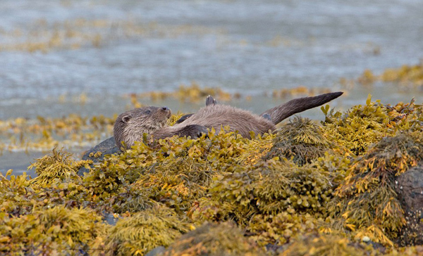 据英国《每日邮报》11月12日报道,近日,英国伯明翰市摄影师皮特·沃克登(Pete Walkden)在苏格兰西海岸的马尔岛上发现了小水獭,并为其拍摄了大量照片。照片中,小水獭正瘫在长满海藻的石头上,伸展着自己的腰身,十分惬意。