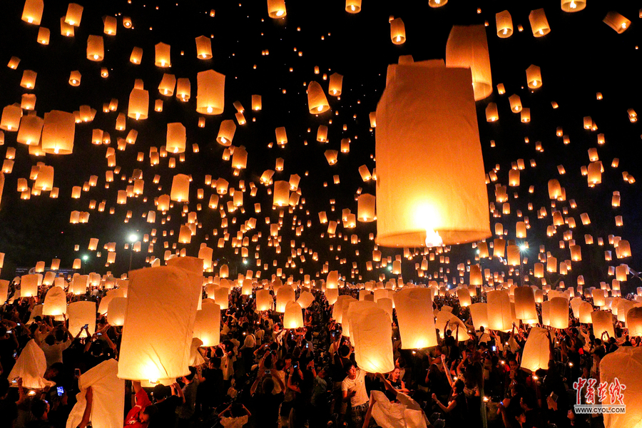 泰国清迈庆祝水灯节 游客共赏“万人天灯”(组图)