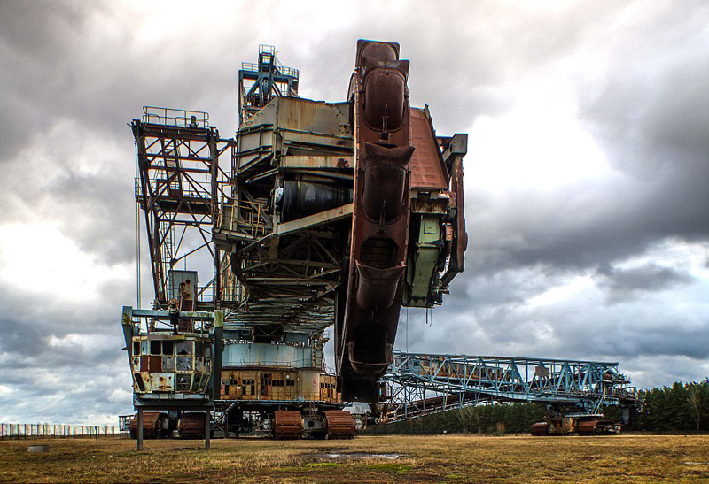 这个巨大的斗轮挖掘机被认为是世界上最大的被遗弃的机器。它被称为“蓝色奇迹”,在德国的劳赫哈默镇组装而成,因机身上明亮的蓝色涂漆而得此名。是一辆370英尺(约113米)长、190英尺(约58米)高、耗费3500吨钢材制作而成的采煤机,共有20个滚斗,每个滚斗单次可采挖52立方英尺(约1.5立方米)的煤。