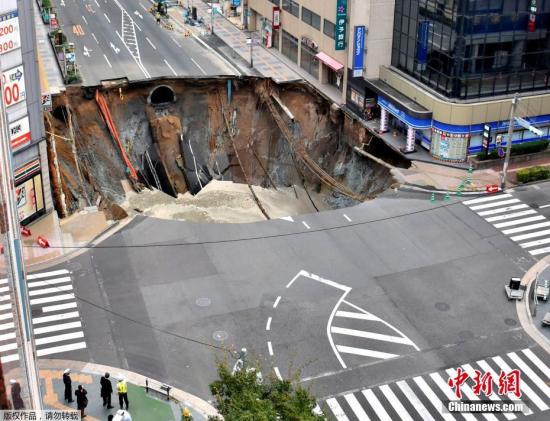 据了解,今年11月8日,日本福冈JR博多站附近的十字路口公路忽然塌陷,出现一个大坑,导致交通混乱及停电。