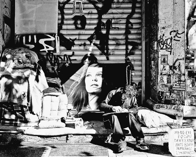 近几年,南欧国家希腊的贫困、失业情况十分严重。图为在希腊雅典,一名流浪汉坐在街边画画讨生活。 人民视觉