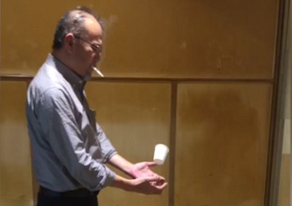 在视频中,他先是将纸杯悬浮在空中,持续了20多秒后,才将纸杯放回桌上。接着,他从口中抽出点燃的香烟,又奇迹般地将它悬浮在双手之上,表演完之后他又从容地将香烟放回口中。