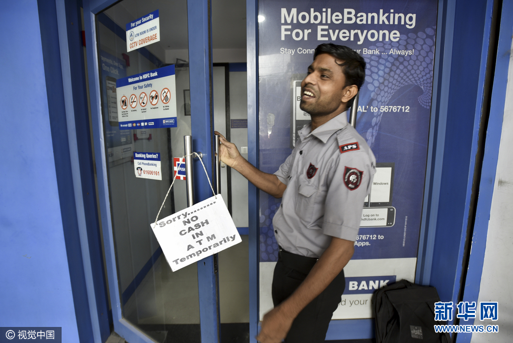 当地时间2016年11月14日,印度民众持续在银行排队兑换新钞,很多自动取款机里的钞票已经被取空。印度总理纳伦德拉·莫迪8日晚突然宣布,当天午夜废除500和1000面额卢比,代之以新版500面额卢比并发行2000面额卢比。人们可凭有效证件从10日至12月30日在邮局或者银行存入这两种旧版货币并以旧换新。图片来源:视觉中国。