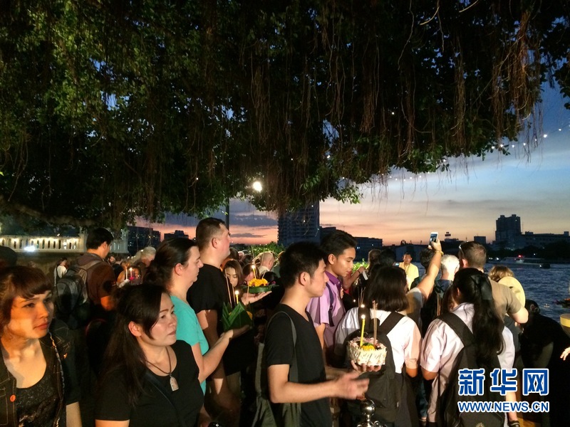 11月14日,在泰国曼谷,民众在等待放水灯。新华网发