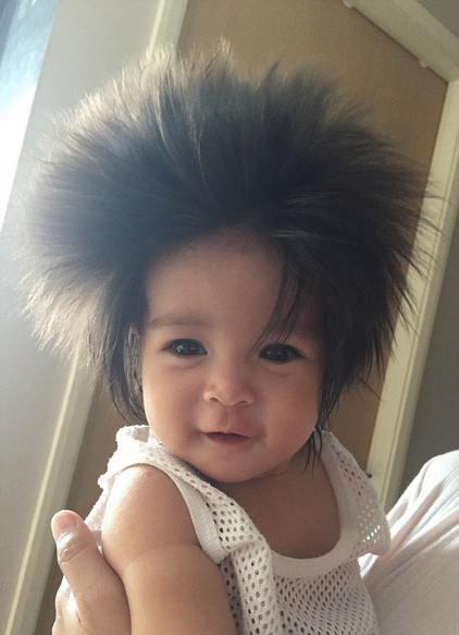 这个名叫希瑟·瑟娜(Heather Serna)的女婴头发天生长得浓密旺盛,才出生几个月大,头发却已疯长到了6英寸(约15.24厘米)长,吹干头发就需要花费1个小时。这个21个月大的婴儿喜欢摆拍,却从不戴头巾打理自己的头发。
