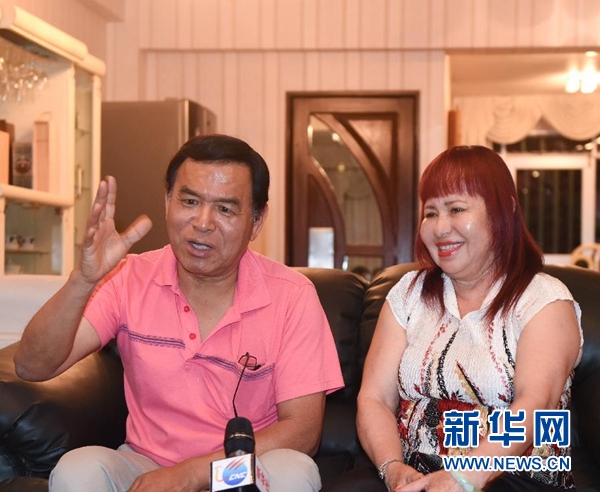 小胡安·弗朗西斯科(左)和妻子康希在秘鲁首都利马的家中接受新华社记者采访(11月4日摄)。新华社记者申宏摄