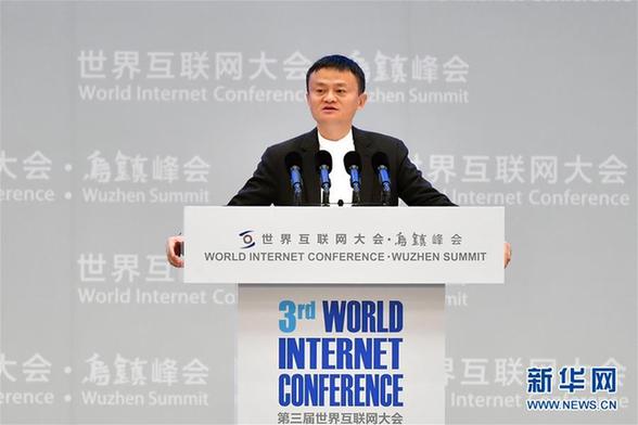 11月16日,阿里巴巴董事局主席马云在开幕式上致辞。11月16日至18日,第三届世界互联网大会在浙江乌镇举行。互联网“大咖”们云集乌镇,共商“网”事。新华社记者 李鑫 摄