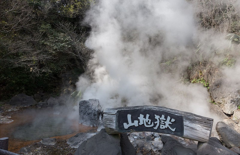 在别府小镇,海地狱是众多地热池中最大的一个,其99度高温的泉口不断喷发出高温水蒸气和“蓝色”泉水。山地狱温度相对较低,为90度。火炉地狱则有6种不同颜色的地热池,温度从80度到沸点不等。此外还有恶魔地狱,白池地狱和血池地狱等大小不一的地热池,每一个都极具特色。