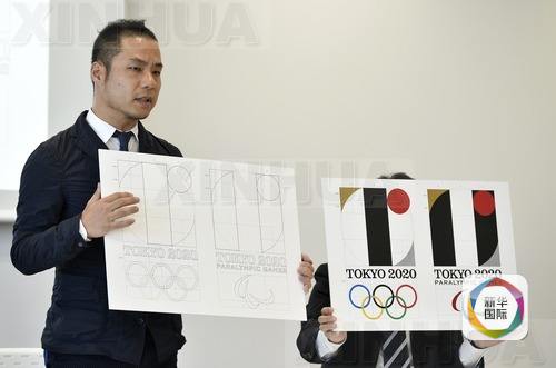 2015年8月5日,设计师佐野研二郎在东京举行新闻发布会,回应由其设计的东京奥运会和残奥会会徽与比利时一家剧院的标识相似度过高的新闻,否认涉嫌“剽窃”。 (新华社发)