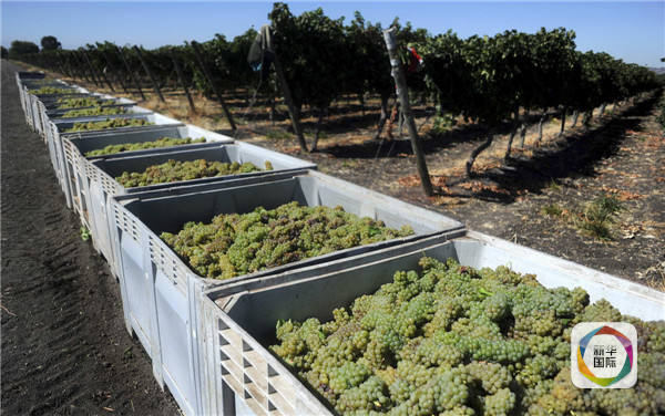 2010年3月25日,智利一葡萄园中摆放着刚刚收获的葡萄。(新华社/路透)
