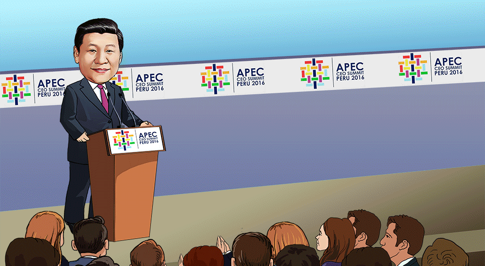 当前,亚太地区正处于发展的关键当口,习主席提出了促进经济一体化、互联互通、促进改革创新、深化伙伴关系等“四点主张”,正切中要害,为共建亚太命运共同体指明了方向。作为世界第二大经济体,中国向何处去举世瞩目。习主席提出推动中国经济平稳健康发展的“四大举措”,勾画出中国经济发展的新蓝图,为促进亚太经济实现强劲、可持续、平衡、包容增长注入“中国动力”。从两年前的雁栖湖到如今的安第斯山,APEC的发展离不开“中国主张”与“中国动力”。“从中国到秘鲁”,中国展现推动亚太共同发展繁荣的坚定决心与大国胸怀,赢得亚太乃至世界广泛点赞。(作者系中国现代国际关系研究院世界经济研究所张茂荣 漫画作者廖婷婷)