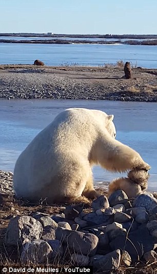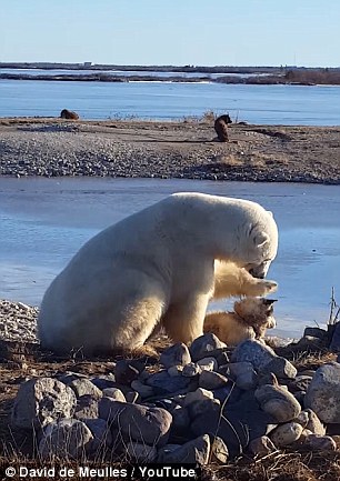 David De Meulles表示,虽然他自己深知北极熊这种动物凶猛无比,但是他也在网上看到过许多关于北极熊和其他动物友好相处的新闻,然而像养宠物一样用爪子爱抚其他动物,这却是David De Meulles做梦也没有想到过的。