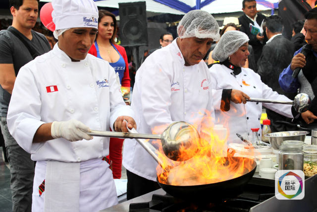 2015年9月17日,两名厨师在秘鲁美食创新大赛上进行炒饭技能比拼。(新华社发 路易斯·卡马乔摄)