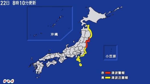 地震引发大海啸,气象厅称,高度将达到3米。此次地震引发东北地区大范围震动,福岛县的震级为5级。东京也有较强震感。