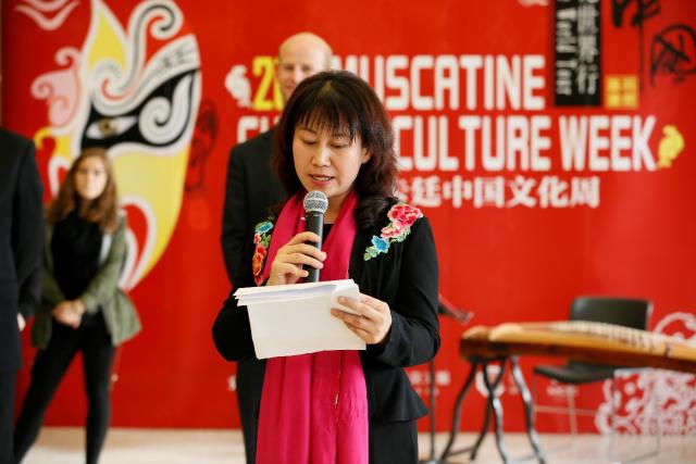 北京文投集团副总经理于爱晶在“马斯卡廷中国文化周”开幕式上致辞 新华社记者汪平 摄