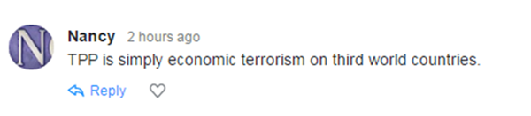 TPP对第三世界国家来说,就是一场经济恐怖主义。