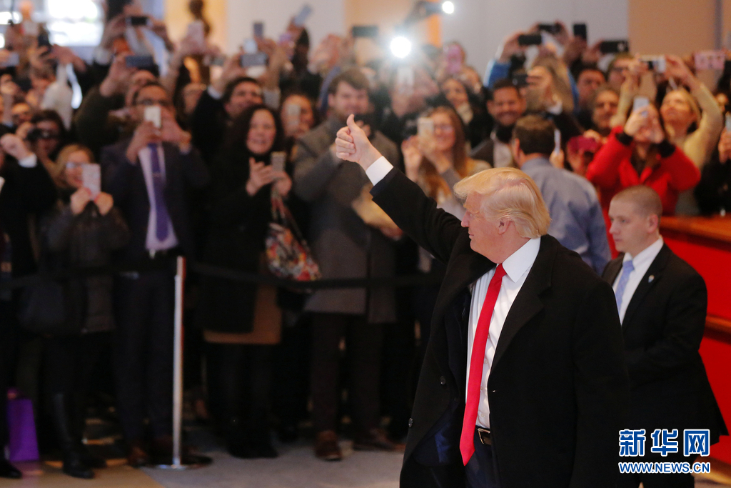 当地时间2016年11月22日,美国纽约,美国候任总统特朗普当地时间22日下午一点左右现身《纽约时报》总部,与该报编辑及记者们就近期关于他的一些热点问题展开对话。 竞选期间,特朗普常常抱怨《纽约时报》等美国多家主流媒体对他不公。在这次对话中,特朗普向《纽约时报》表达敬意的同时也不忘揶揄该报一番。他说:“我对《纽约时报》有着极高的敬意。但你们对待我的方式非常粗暴。” 特朗普还说,“我看纽约时报。但不幸的是,我要是不看的话会多活20多年。”图片来源:视觉中国。