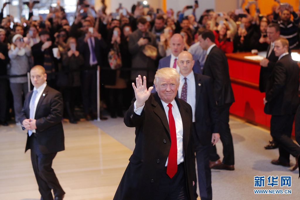当地时间2016年11月22日,美国纽约,美国候任总统特朗普当地时间22日下午一点左右现身《纽约时报》总部,与该报编辑及记者们就近期关于他的一些热点问题展开对话。 竞选期间,特朗普常常抱怨《纽约时报》等美国多家主流媒体对他不公。在这次对话中,特朗普向《纽约时报》表达敬意的同时也不忘揶揄该报一番。他说:“我对《纽约时报》有着极高的敬意。但你们对待我的方式非常粗暴。” 特朗普还说,“我看纽约时报。但不幸的是,我要是不看的话会多活20多年。”图片来源:视觉中国。