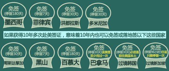 一次签证,省事十年,这样的福利简直不要太好!锦上添花的是,“十年签证”不仅节省了反复办理签证手续的费用和麻烦,更有许多别的国家可以因此免签!以美国为例,持有美国十年多次往返签证简直像是开启了旅游圈的“任意门”!详情看图: