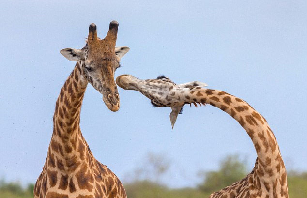 非洲长颈鹿上演“脖”斗场面滑稽可爱(组图)