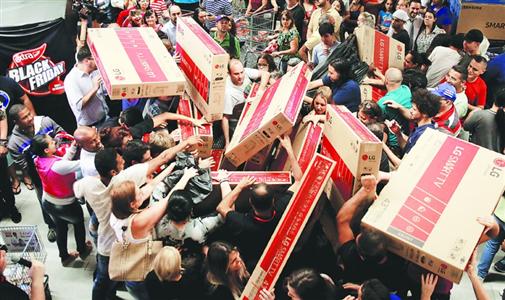 11月24日,在巴西圣保罗,人们在“黑色星期五”购物节上抢购商品。 新华社/路透