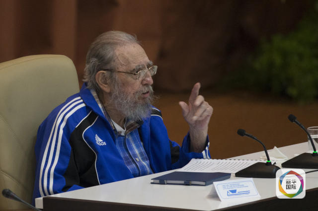4月19日,在古巴首都哈瓦那,菲德尔·卡斯特罗在古巴共产党(古共)第七次全国代表大会上发表讲话。新华社/“古巴辩论”网站