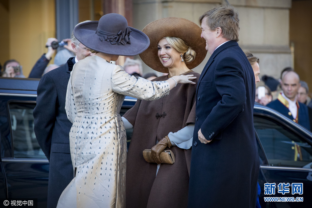 尴尬!比利时王后与荷兰国王行贴面礼 帽子太大贴不着(组图)