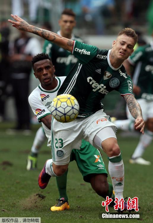 当地时间11月27日,巴西圣保罗,2016巴甲第37轮,沙佩科恩斯0-1不敌帕尔梅拉斯。帕尔梅拉斯夺巴甲联赛冠军。图为沙佩科恩斯与帕尔梅拉斯比赛现场。