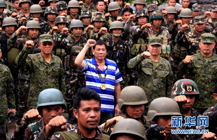 当地时间2016年11月30日,菲律宾南拉瑙省,菲律宾总统杜特尔特参观军队。当地士兵参加打击伊斯兰极端组织任务。图片来源:视觉中国