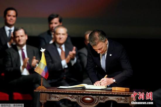 11月24日,在哥伦比亚首都波哥大,哥伦比亚总统桑托斯签署新的和平协议。哥伦比亚总统桑托斯和该国最大反政府武装“哥伦比亚革命武装力量”(简称“哥武”)领导人罗德里格·隆多尼奥·埃切韦里当日在波哥大正式签署新的和平协议。