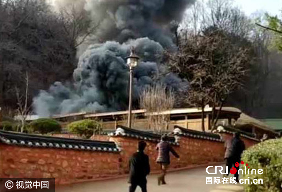 当地时间2016年12月1日,韩国庆尚北道龟尾市,韩国现任总统朴槿惠之父、韩国前总统朴正熙故居发生火灾,警察当场抓获一名40至50多岁的男性纵火嫌疑人。图片来源:视觉中国