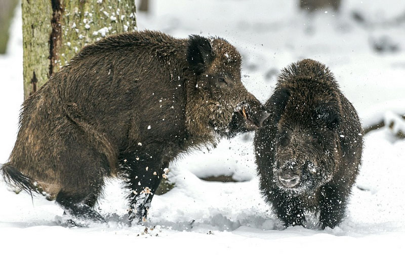 德国两野猪冰天雪地上演打斗决战(组图)