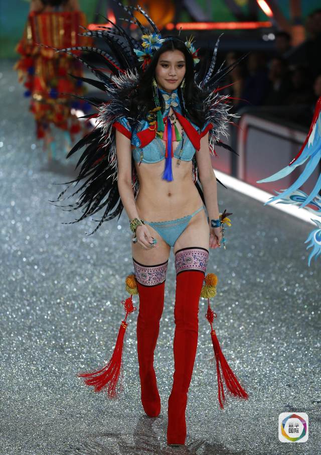 中国模特奚梦瑶在2016“维多利亚的秘密”时装秀上展示服饰。