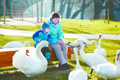 冬日的布拉格伏尔塔瓦河射手岛依然绿草如茵,暖阳高照,宁静、优美恍若春天一般,是数百只白天鹅栖息的乐园。成群的白天鹅在这里时而翩翩起舞,时而追逐嬉戏、觅食,尽情享受大自然给予的安谧与美好。为让这些人类的朋友安全过冬,每天都有不少市民与游客前来观赏、喂食,与之零距离接触,他们关爱动物、尊重生命,与白天鹅和谐相处,温情而浪漫。