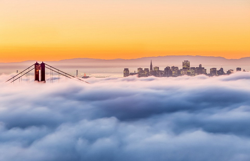 其中,一名摄影师拍摄的一张照片十分震撼人心,旧金山金门大桥从浓雾中冉冉升起,宛如伫立在仙境中。此外,摄影师们还拍摄到了许多迷人的画面,如带刺的树在星空下“遥望”远方,五颜六色的花朵布满草地,萤火虫将森林和小河氤氲得熠熠生辉,还有冰雪融化时水里的斑斓小鱼和北极熊。