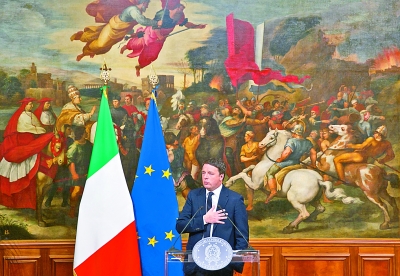 12月5日,在意大利罗马,意大利总理伦齐宣布辞职。意大利媒体当天说,初步统计结果显示,意大利修宪公投反对票超过赞成票,修宪被否决已成定局。 新华社记者 金宇摄