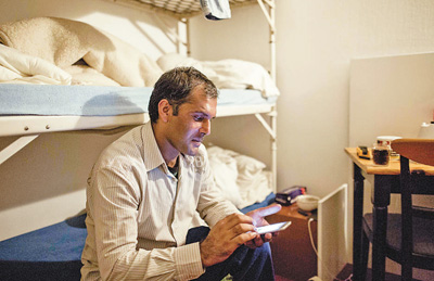 随着难民潮的涌入,欧洲国家反对难民的声音在社交媒体上流传,造成当地居民与难民关系紧张。图为今年8月,在德国包岑的一处避难所里,一名难民正用手机浏览社交网络。