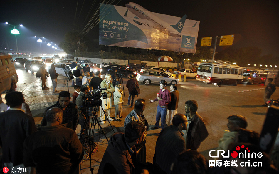 当地时间2016年12月7日,巴基斯坦首都伊斯兰堡,巴基斯坦媒体和市民聚集在贝娜齐尔-布托国际机场焦急等待坠毁客机的最新消息。图片来源:东方IC