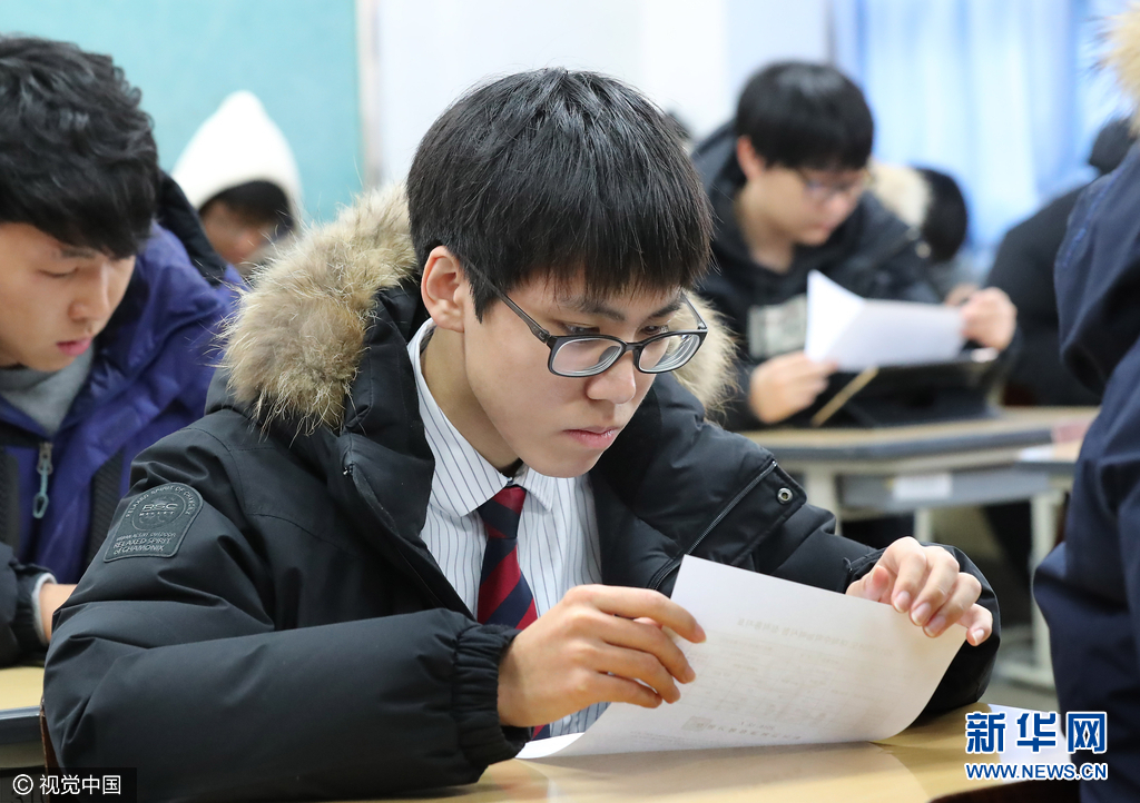当地时间2016年12月7日,2017学年度韩国高考(又称“大学修学能力考试”)的成绩揭晓。拿到成绩单的考生怀着激动的心情确认自己的分数,有的欢呼雀跃,有的则眉头紧锁,可谓是几家欢喜几家愁。 成绩揭晓的同时,各家教育机构就公布了分析预测的各所名校及热门专业分数线,并将其整理成目录,准备在即将举行的高考志愿填报说明会上分发给考生和家长,并将展开咨询服务。 据预测,首尔大学、延世大学、高丽大学等首尔名校的热门学科的分数线将达到385分以上。例如首尔大学医学预科的分数线预计为389分,经营专业分数线预计为390分。(图片来源:视觉中国)