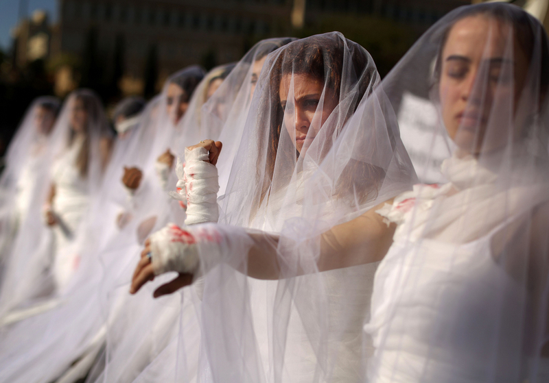 黎巴嫩民众穿婚纱抗议保护强奸犯法案(组图)