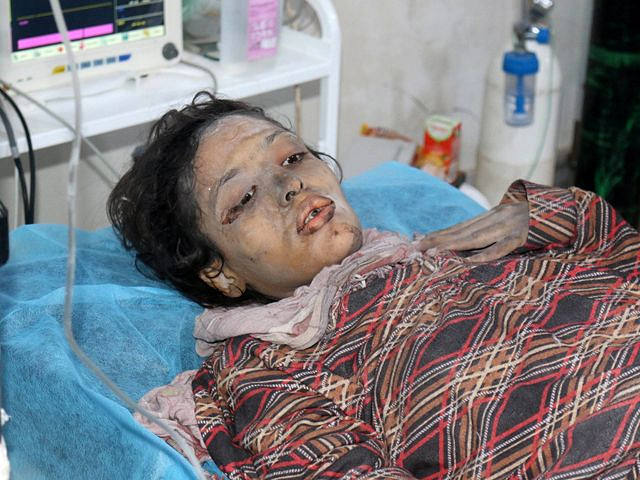 一名获救妇女在野战医院接受治疗。(新华/路透)