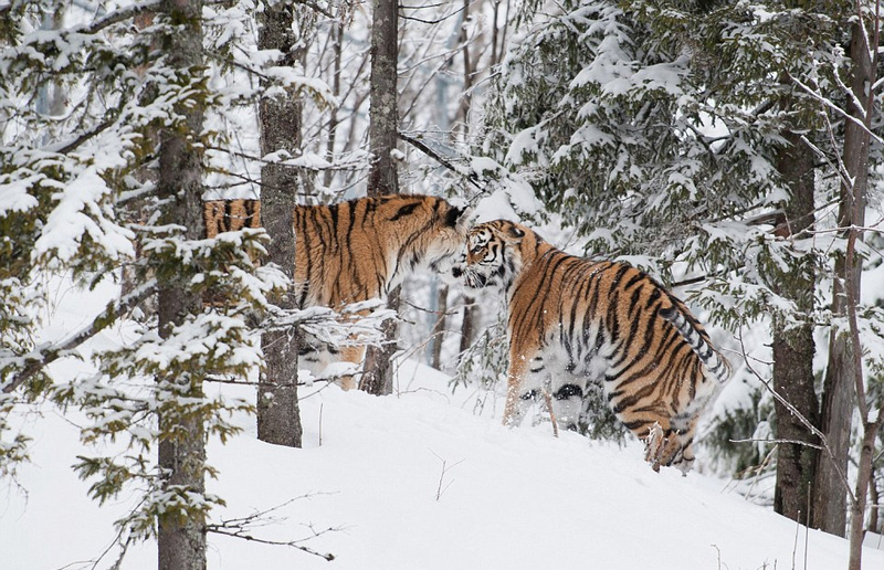 瑞典两雄性老虎为争伴侣雪地激烈争斗(组图)