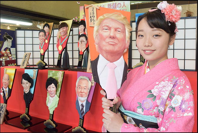 负责以日本摔跤国手伊调馨以及特朗普为原型的羽子板均由才进入公司两年的须贺友佳理亲手制成。她表示“这次做的羽子板比去年做的要好一些。由于特朗普等外国人的脸部比较深邃,制作的时候花了点功夫。”(实习编译:吴潇 审稿:马丽)