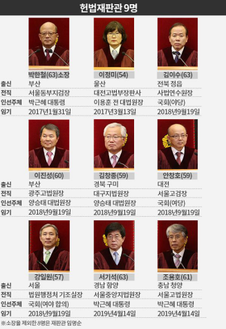 韩国宪法法院9名大法官将决定朴槿惠的最终命运