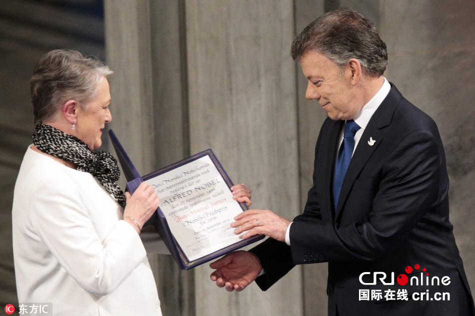 诺贝尔和平奖颁奖典礼在挪威举行 哥伦比亚总统桑德斯领奖(组图)
