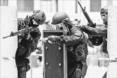 当前欧洲依然面临十分严峻的安全威胁,欧盟国家不断加强对恐怖袭击的防范措施。图为12月9日,在位于比利时布鲁塞尔的欧洲理事会大楼内,法国特种部队参加反恐演习。新华社发