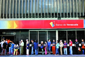上个月,委内瑞拉货币玻利瓦尔在黑市中兑美元的汇率也下跌了惊人的67%——6000玻利瓦尔只值1.3美元。人们涌向取款机,争先恐后地把钱取出来。委银行业对客户设定了取款限额。储户要把自己的钱全部取出,就需要在ATM机上进行多达7次的取款操作。人们在银行门前焦急地等待,生怕前面的人取完钱之后,ATM机的余额已经不足。
