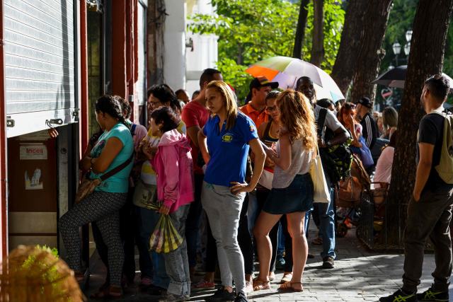 12月9日,在委内瑞拉加拉加斯,人们在一家打折促销的服装店外排队购物。(新华/法新)