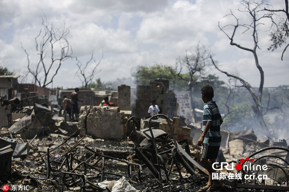 当地时间2016年12月12日,巴西累西腓市,当地一贫民窟发生火灾,数十户房屋被烧毁,3人被严重烧伤。图片来源:东方IC