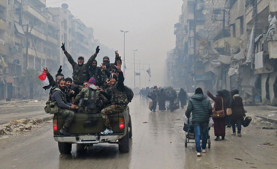 叙利亚反政府武装和布斯坦·阿·凯瑟区的难民一同撤离阿勒颇。(网页截图)